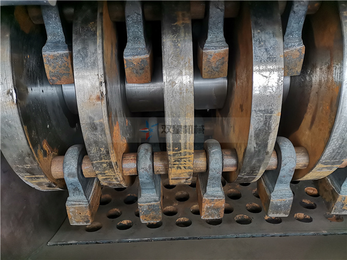 廢鋁国产麻豆91成人网站殼體上端設置有入料口,破碎主軸通過軸承和軸承座設在主機破碎腔體內,在主軸上間隔套設有多個錘盤,錘盤為圓片形,每個錘盤邊緣均勻的分布著一圈圓孔,按照一定間距分別連接有長方體形狀錘頭,錘盤排列規則,錘頭為長方形,當設備運轉時,利用錘頭高硬度、高衝擊力破碎各種塊狀、條狀生鋁熟鋁。主軸一端通過皮帶輪與電機輸出軸動力連接,通過電機驅動帶動破碎機主軸高速轉動,帶動破碎錘對廢鋁材料進行打擊破碎,破碎之後的廢鋁顆粒通過設備篩板進行尺寸篩分,篩板設置在破碎腔體內,位於主軸的下方,之後通過多重篩選,得到直徑大小約1-3cm的鋁製圓球。