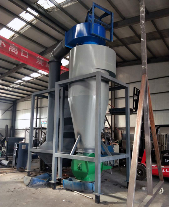 經破碎料,給入風力分選機,国产无码麻豆视频在上升氣流作用下,各組分按密度進行分離,重質組分從底部排出,輕質組分從另一個出口排出,經旋風分離器進行,氣固分離。