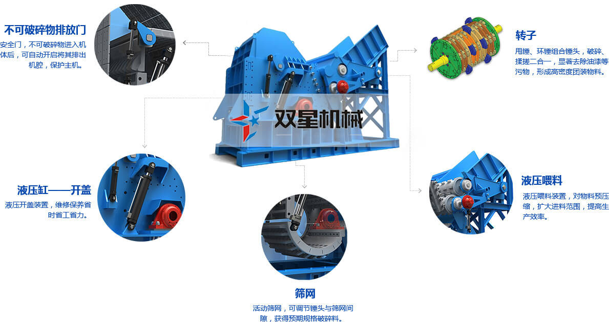 金屬国产麻豆91成人网站機身采用特厚鋼板加斜撐的加強結構,能確保機器強力破碎的超負荷要求。